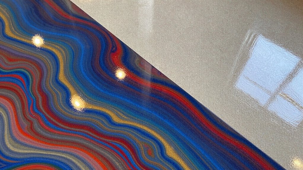 When it comes to durability and long-term performance, epoxy coatings often lead the pack due to their exceptional hardness and strong chemical resistance. They withstand heavy wear and tear, making them ideal for high-traffic areas. Epoxies also offer a wide range of color options, allowing you to customize the look while maintaining their toughness. This flexibility enhances their aesthetic appeal, even after years of use. Polyurea and polyaspartic coatings excel in quick curing and flexibility but may not match epoxy’s long-term durability. If your priority is a resilient, lasting finish with vibrant color choices, epoxy is your best bet. It provides reliable protection and maintains its appearance over time, ensuring your surface remains durable and visually appealing for years to come.