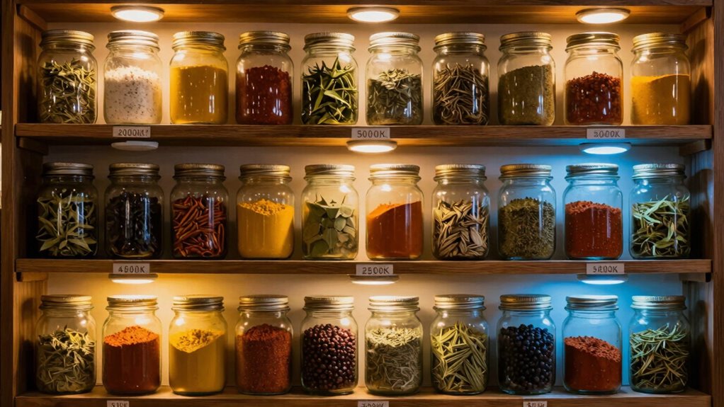 Understanding what the numbers 4000K, 5000K, and 6500K mean is essential when choosing shop lighting, as they indicate the color temperature of the light. These ratings influence how you perceive colors and can affect the overall mood of your workspace. A 4000K light offers a neutral, balanced tone that enhances accurate color perception without feeling too harsh. Moving to 5000K, the light becomes cooler, improving clarity and making details pop, which boosts mood and focus. At 6500K, the light is very cool, almost daylight-like, which can make your shop feel bright and energetic. Your choice impacts how products are viewed and how you feel working inside, making color temperature and mood enhancement key factors in selecting the right lighting. Additionally, understanding digital concepts related to lighting can help optimize your workspace for productivity and comfort.