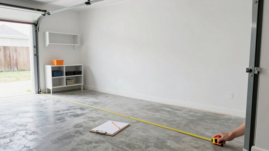 Before you start measuring, gather all the necessary tools to guarantee the process goes smoothly. Proper garage organization begins with having the right tools on hand. Check that your tape measure, level, and pencil are ready for use. It’s also helpful to have a notepad or smartphone to record measurements immediately. Taking time to organize your tools and clean the garage beforehand ensures you won’t waste time searching during the process. Regular tool maintenance keeps your measuring tools accurate and reliable. Clear the space around your work area to avoid obstacles and ensure safety. Incorporating mind-body healing techniques can help you stay focused and reduce stress during your project. Efficient filter sizing and proper planning can contribute to a smoother makeover process. Additionally, understanding your storage needs can help you optimize your garage layout for better organization. Planning your layout with space utilization in mind can further enhance your garage’s functionality. Being aware of measurement accuracy can help you avoid costly mistakes later on. By preparing thoroughly, you’ll streamline your measurement process and set a solid foundation for your garage makeover.