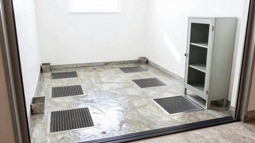 Once you’ve spotted signs of rodents, the next step is to eliminate what’s attracting them in the first place. Start by removing food sources like spilled grains, pet food, and unsecured trash. Store items in sealed containers to deny access. Clear clutter and debris that provide hiding spots. Use bait stations strategically around your garage, filled with rodent attractants, but guarantee they’re placed safely away from children and pets. Employ trapping techniques such as snap traps or live traps near entry points and active runways. Regularly check and reset traps to reduce the rodent population. Additionally, utilizing technological integration like digital monitoring systems can help track rodent activity more effectively. Proper sanitation and regular cleaning are also crucial to prevent re-infestation by eliminating lingering food residues and nesting materials. Implementing rodent-proofing methods such as sealing entry points can significantly reduce the chance of new rodents entering. Incorporating preventative measures like weather stripping and mesh barriers further enhances your defenses. By removing these attractants and setting effective traps, you’ll make your garage less appealing and discourage rodents from settling in.