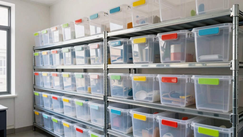 - Choose durable, impact-resistant bins with clear labels and color coding for easy identification and long-term organization.