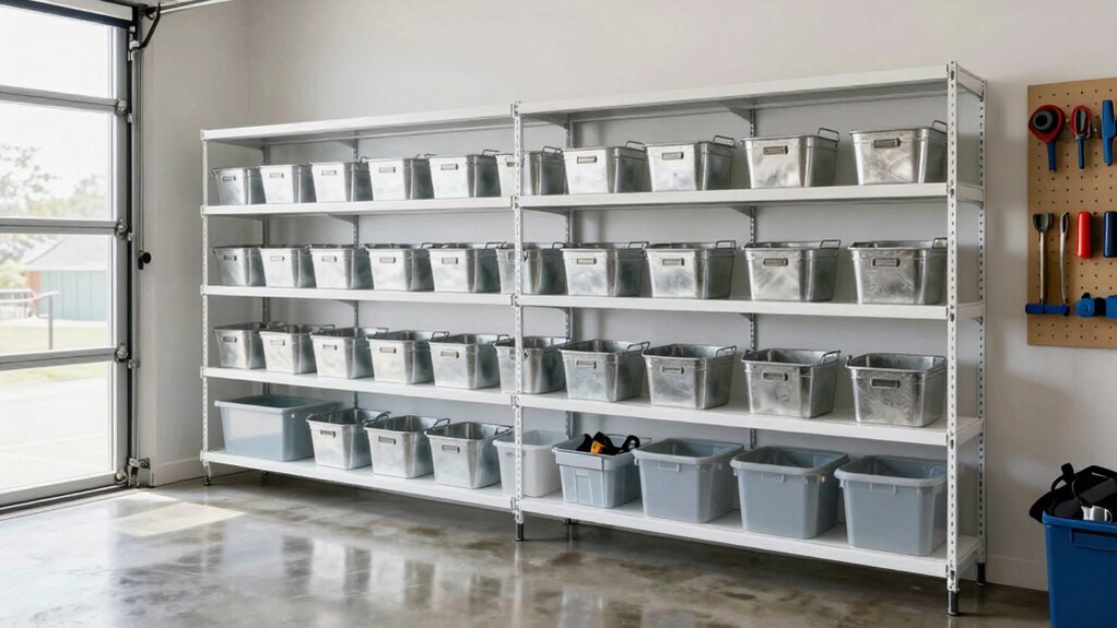Using clear labels helps you quickly identify where everything belongs, saving time and avoiding clutter. Defining specific zones for tools, seasonal items, and sports gear keeps your garage organized and efficient. With straightforward labeling techniques, you’ll maintain a tidy space that’s easy to navigate.