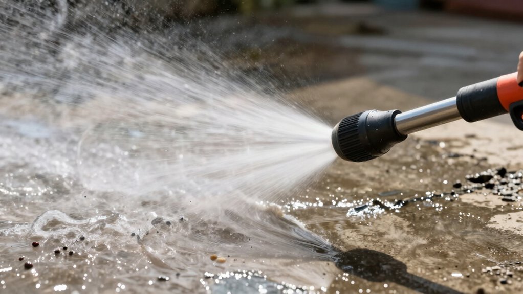 Choosing the right pressure washer tips can make a significant difference in cleaning efficiency and surface safety. For different tasks, selecting appropriate pressure washer accessories guarantees the best results. For example, use a wide-angle nozzle for delicate surfaces like wood decks to prevent damage. For stubborn grime on concrete, a turbo or rotating nozzle provides more power. Always follow maintenance tips, like cleaning spray guns and replacing worn tips, to keep your equipment performing well.