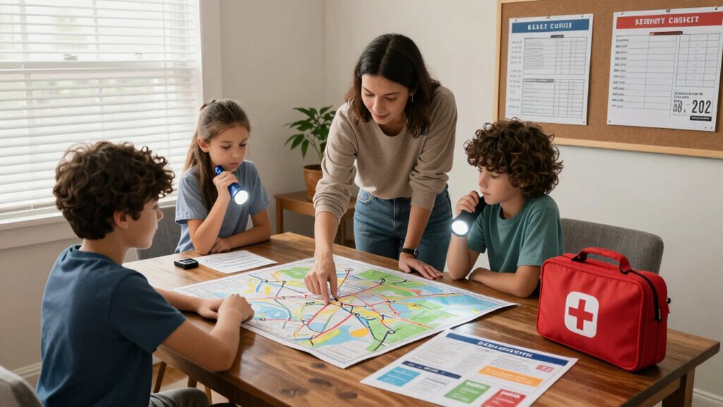 How can your family stay connected during an emergency? The key is developing an emergency communication plan. First, assign each family member an emergency contact outside your area, such as a relative or friend, who can relay messages. Make certain everyone knows how to reach this person. Next, identify communication devices everyone can use, like cell phones, walkie-talkies, or text messaging. Keep devices charged and accessible. Establish a designated meeting spot and a clear method for sharing updates if separated. Practice using these devices and confirm all family members understand the plan. Having reliable emergency contacts and communication tools in place helps your family stay informed and connected, reducing panic during stressful situations.