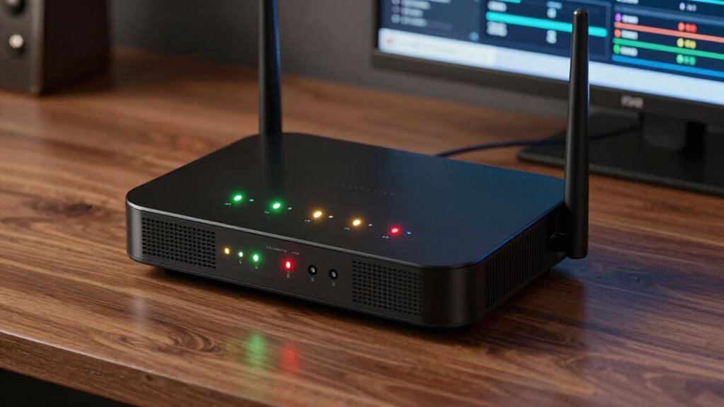 Your advertised speed shows the maximum potential bandwidth your router can handle under ideal conditions. However, real-world performance often falls short due to bandwidth limitations, signal interference, and network congestion. You might experience slower speeds than advertised, especially if multiple devices are connected or if there’s physical interference like walls or electronic devices. To optimize performance, reduce interference and guarantee your hardware supports the speeds you’re aiming for.