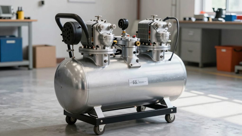 When selecting a 60-gallon two-stage air compressor, noise levels and user comfort are important factors to keep in mind. Lower noise levels, around 65-75 decibels, create a more comfortable work environment and help reduce fatigue during long sessions. Oil-free compressors tend to operate more quietly than oil-lubricated models, adding to overall comfort. Design also plays a role; two-stage units generally produce less noise thanks to their efficient operation. Additionally, sound-dampening materials and enclosures can considerably cut operational noise, making the workspace more pleasant. Operating at or below 80 decibels is usually acceptable in most workshops, ensuring comfort without sacrificing performance. Prioritizing these factors helps create a quieter, more user-friendly environment for any project.