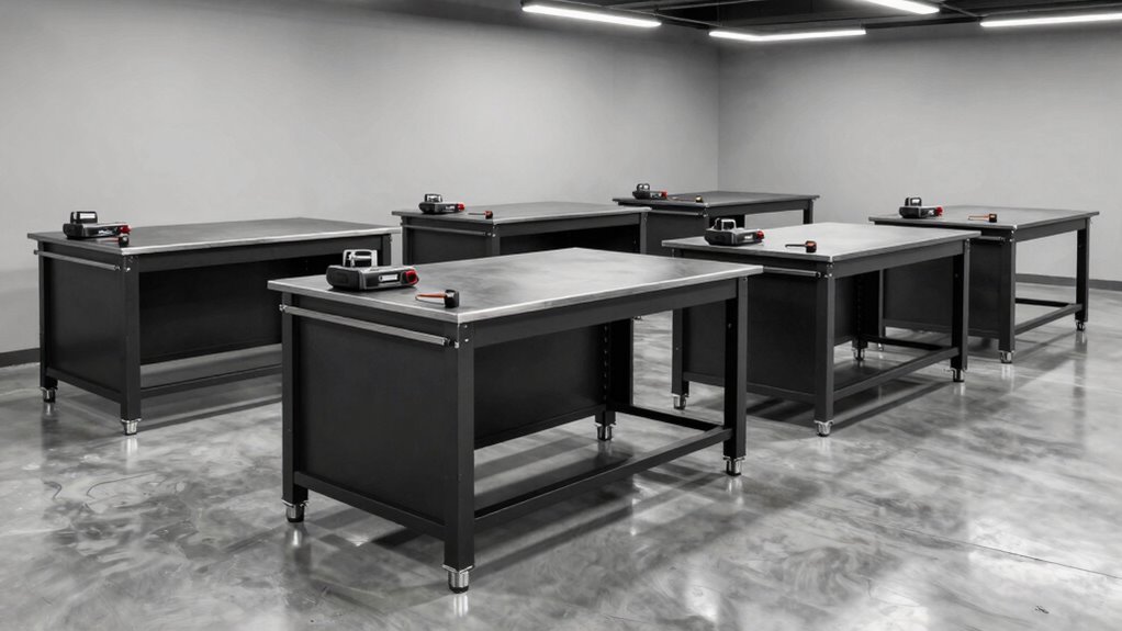 • Focus on workbenches with high weight capacities (up to 14,000 lbs) and reinforced structural supports for heavy-duty tasks.