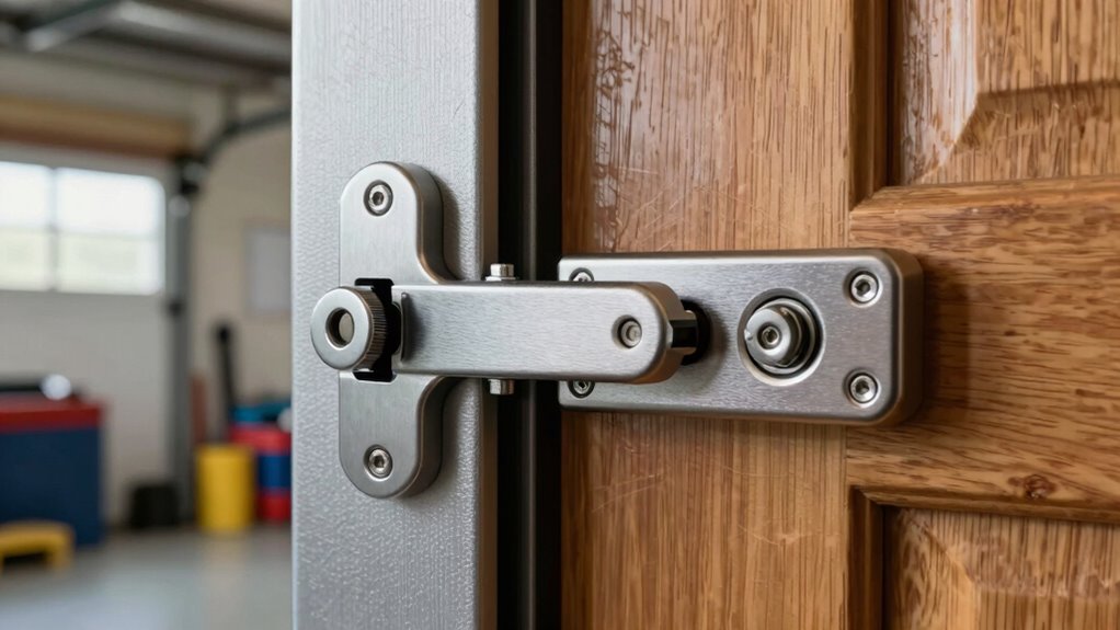 The type of locking mechanism plays an essential role in how secure and convenient your garage entry lock will be. Manual locks require physical operation, like turning a key or knob, offering straightforward security. Electronic options, such as keypad or remote-controlled locks, provide added convenience and quick access, especially in emergencies. Impact-resistant locks often feature reinforced deadbolts or spring-loaded mechanisms designed to withstand forced entry. Some locks use a slide or pin system that automatically engages when the door closes, ensuring a secure lock with minimal effort. The effectiveness of the mechanism depends on its resistance to tampering, picking, or bumping. For ease of use, locks with a one-step locking process are ideal, simplifying operation during urgent situations.