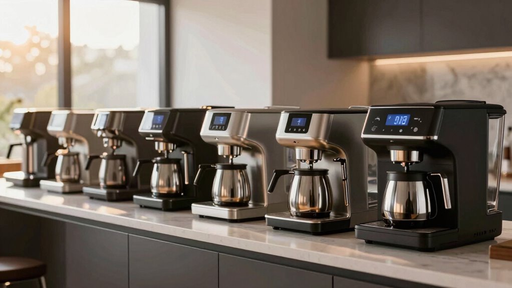 Choosing the right drip coffee maker with a thermal carafe can truly elevate your mornings. Did you know that thermal carafes help preserve coffee’s flavor for up to two hours longer than glass ones? With so many great options—from the advanced Breville to budget-friendly Black+Decker—you’re bound to find one that fits your lifestyle. Investing in a quality machine guarantees every cup stays fresh and delicious, making your coffee routine even more enjoyable.