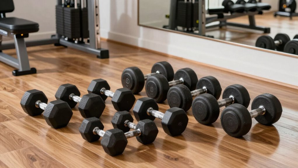 They say safety first, and I totally agree. When choosing dumbbell sets, look for secure locking mechanisms, non-slip handles, and sturdy construction. Adjustable dumbbells should have reliable collars to prevent weight slips, while fixed weights need smooth, comfortable grips. Always check for quality materials that won’t easily break or cause injury. Your safety is worth investing in well-made, thoughtfully designed equipment that keeps your workouts secure and effective.
