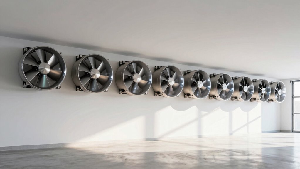 They say, “A chain is only as strong as its weakest link,” and that’s true for garage ventilation too. Airflow efficiency directly impacts how well your garage clears out fumes, humidity, and odors. If the fan moves air quickly and consistently, your space stays safer and more comfortable. Poor airflow means lingering pollutants, which can be hazardous. So, investing in efficient fans guarantees your garage remains fresh and safe for every project.