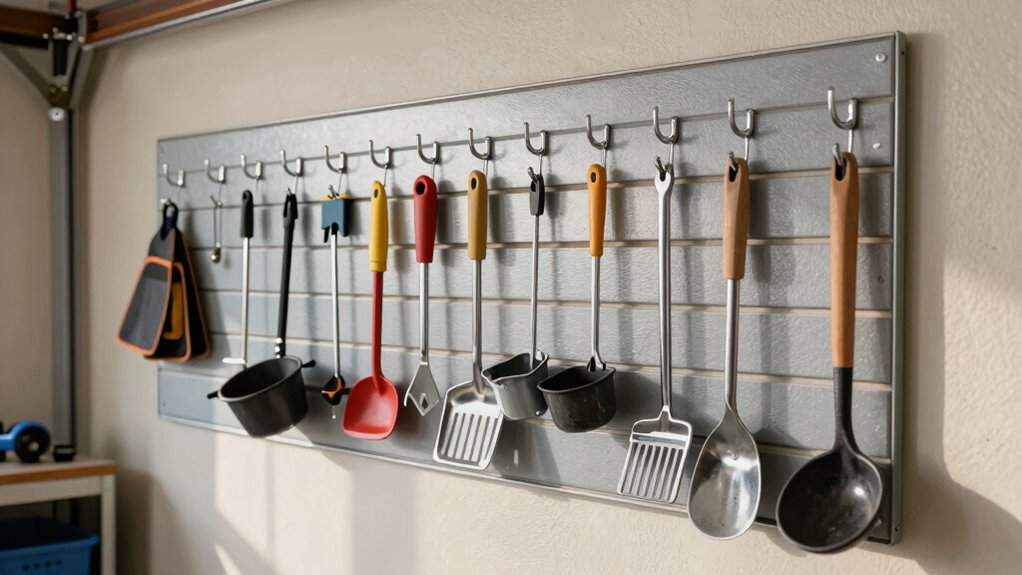When it comes to organizing my garage, the variety of slatwall hooks available makes a significant difference. I love how different sizes and shapes, like U-hooks, J-hooks, and single hooks, let me customize storage for various items. Many sets offer multiple quantities of each type, ensuring I have the right hooks for my needs. For my larger tools, I appreciate hooks designed for heavy-duty use, supporting up to 80 pounds or more. I also find specialty hooks, like double hooks, provide extra security when hanging items. Plus, features like rubber caps enhance grip and prevent scratches on my gear, making the overall functionality even better. Choosing the right hook variety truly transforms my garage organization.