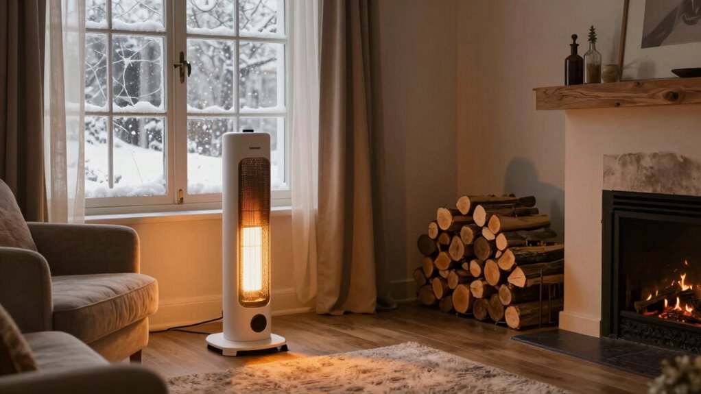 Did you know that a well-chosen heater can cut your energy bills by up to 20%? When selecting the right heater for your drafty room, consider factors like size, safety features, and whether you want infrared or ceramic technology. With the right model, you’ll stay warm and cozy while saving money and energy. Remember, a good heater isn’t just about warmth—it’s about creating a comfortable, inviting space all winter long.
