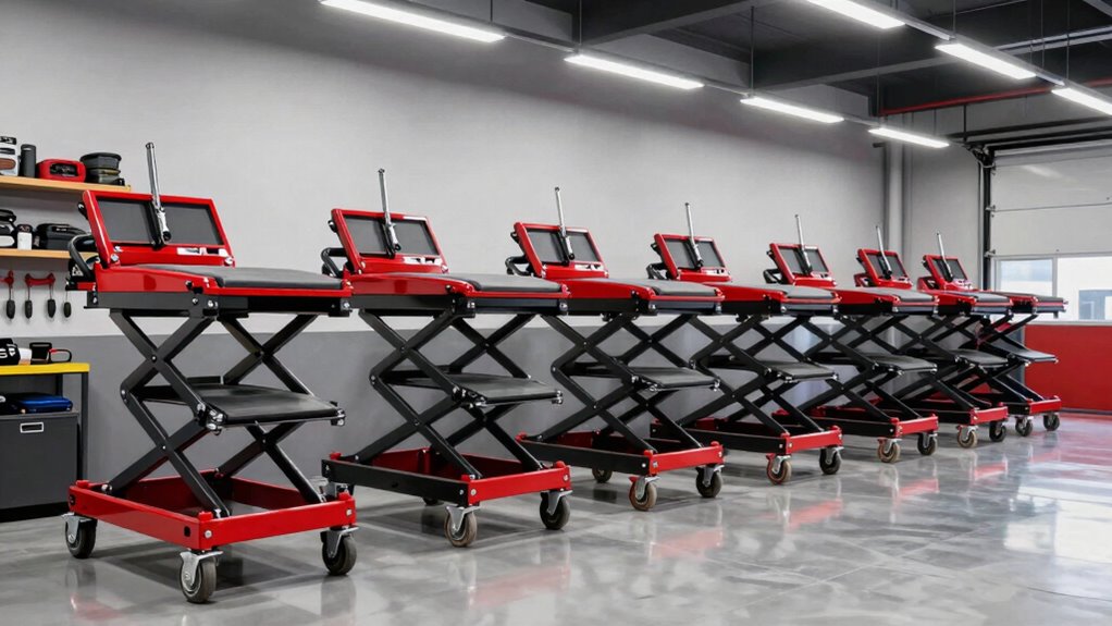 Choosing the right hydraulic lift cart is like finding the perfect compass for your garage’s treasure map—guiding you smoothly through heavy loads and tight spots. With these top picks, you’ll access a new level of efficiency and safety, making your workspace feel more like a well-oiled machine than a chaotic workshop. So, gear up and let these sturdy giants help you conquer your tasks with confidence and grace, turning every lift into a effortless dance.