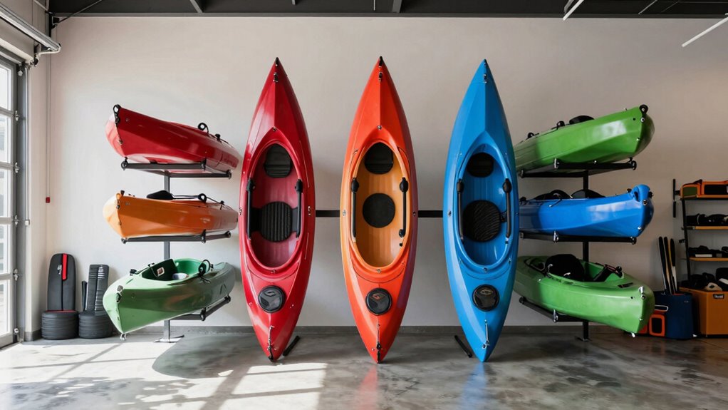 Choosing the right kayak storage rack is like finding the perfect anchor—it keeps your gear secure and your garage organized. Whether you prefer a sturdy wall-mounted option or a versatile ceiling hoist, there’s a solution for every space and need. Remember, a good rack isn’t just storage; it’s peace of mind, ensuring your kayak stays safe and ready for your next adventure. So, pick the one that fits your style and let your gear sail smoothly!