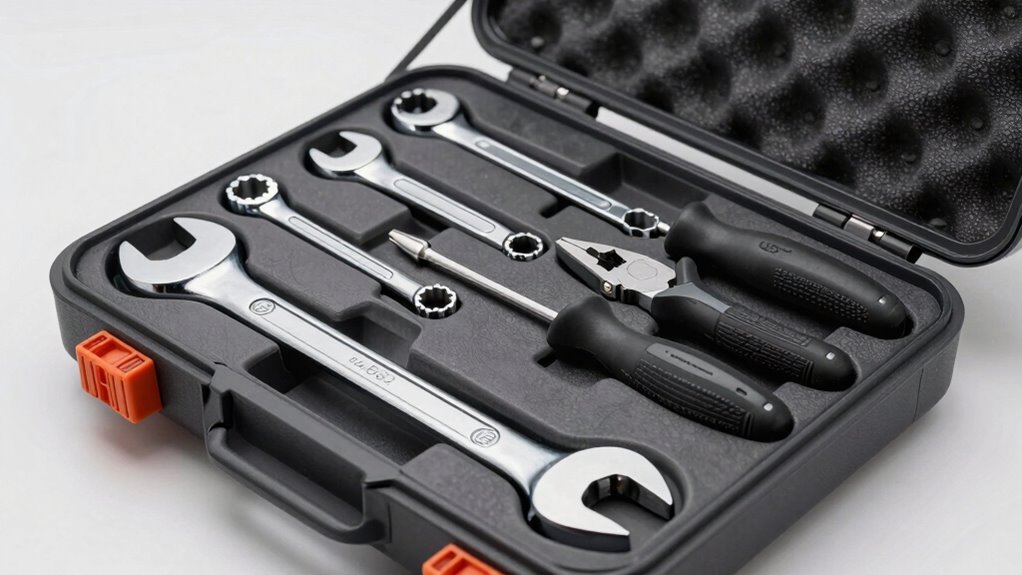 Choosing a mechanic tool set that can stand up to heavy use hinges on the materials used in its construction. High-quality sets often feature tools made from chrome vanadium steel, which offers exceptional strength and resistance to wear and corrosion. Heat treatment processes further enhance durability by increasing the tools’ hardness and toughness, allowing them to handle demanding tasks without deforming. Chrome plating adds a smooth, protective layer that fights rust and extends the lifespan of each tool. The high tensile strength of these materials means they can withstand high torque without breaking or warping. Selecting tools with reinforced construction and anti-corrosion finishes guarantees long-term performance, making them reliable even in tough repair environments. Material durability and strength are essential for lasting value.