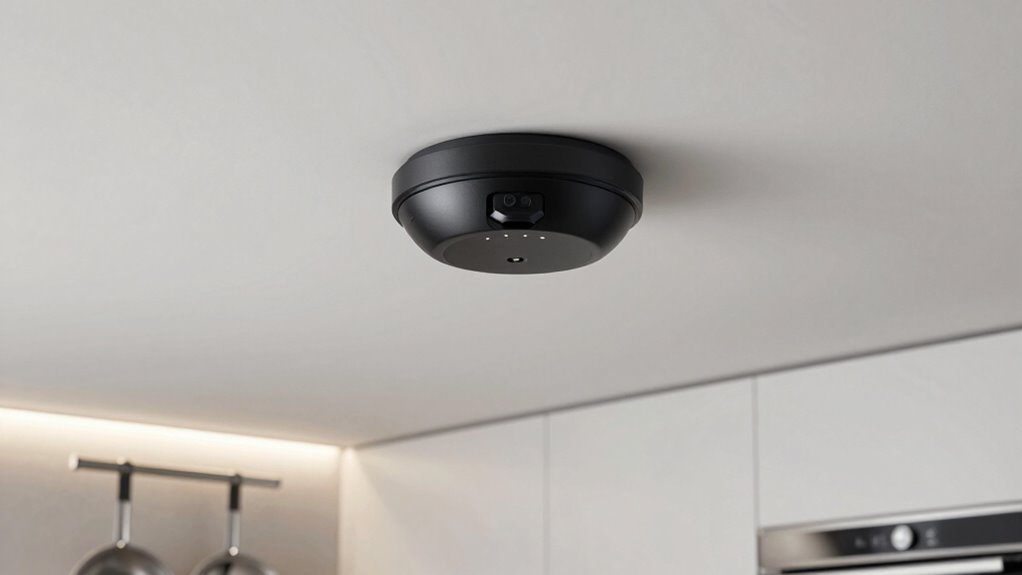 Choosing the right smart smoke detector for your kitchen hinges on understanding the underlying detection technologies. Most smart detectors use photoelectric sensors, which are excellent at catching smoldering fires and help reduce false alarms from cooking fumes. For detecting carbon monoxide, electrochemical sensors provide quick, accurate alerts that are essential in a kitchen environment. Some advanced models combine both sensor types, offering comprehensive monitoring of smoke and CO. Sensitivity settings can often be adjusted, allowing you to reduce false alarms caused by steam or cooking smoke. Response time is also critical, with some detectors alerting you within seconds of detecting danger. By understanding these technologies, you can select a smart detector that balances safety, reliability, and usability in your kitchen.