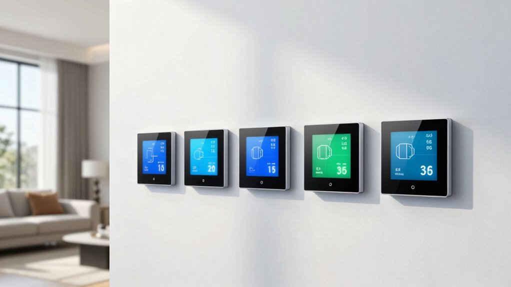 Have you considered how remote sensors can enhance your smart thermostat’s performance? These sensors can monitor temperature and occupancy in different rooms, giving you a more accurate picture of your home’s climate. Wireless sensors are especially appealing because they’re easy to install and can be placed flexibly around your house. Integration allows your thermostat to adjust heating and cooling based on real-time data from multiple areas, not just the main thermostat location. Some models support up to five or more sensors, providing all-encompassing coverage. Sensors that detect occupancy help optimize energy use by activating climate control only when rooms are occupied. This way, you save energy and stay comfortable throughout your home. When choosing a thermostat, consider how many sensors it supports and whether they suit your home’s layout.