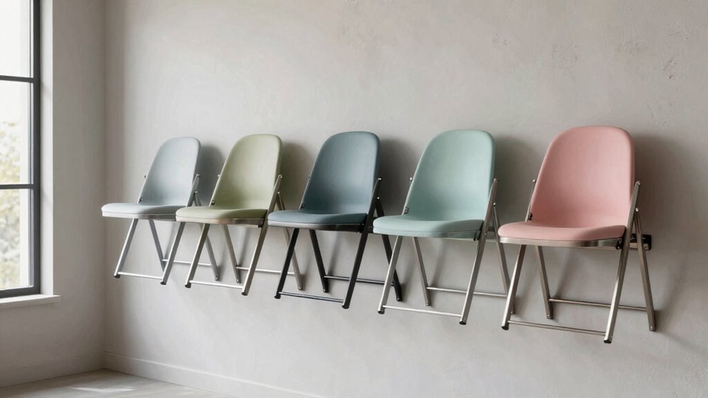 Choosing wall storage for folding chairs isn’t just about functionality; it’s also about how well it complements your space’s decor. The right design can enhance the overall look, making your area feel more inviting and organized. Sleek, modern styles add a stylish touch, turning storage into a visual feature rather than an eyesore. Opting for racks with neutral or matching colors helps keep a cohesive aesthetic and prevents clutter from overwhelming the space. The visual finish and clean lines of well-designed storage contribute to a neat, tidy appearance, which influences how organized and fresh the room feels. Ultimately, selecting storage that blends seamlessly with your decor improves both the functionality and visual appeal of your environment.
